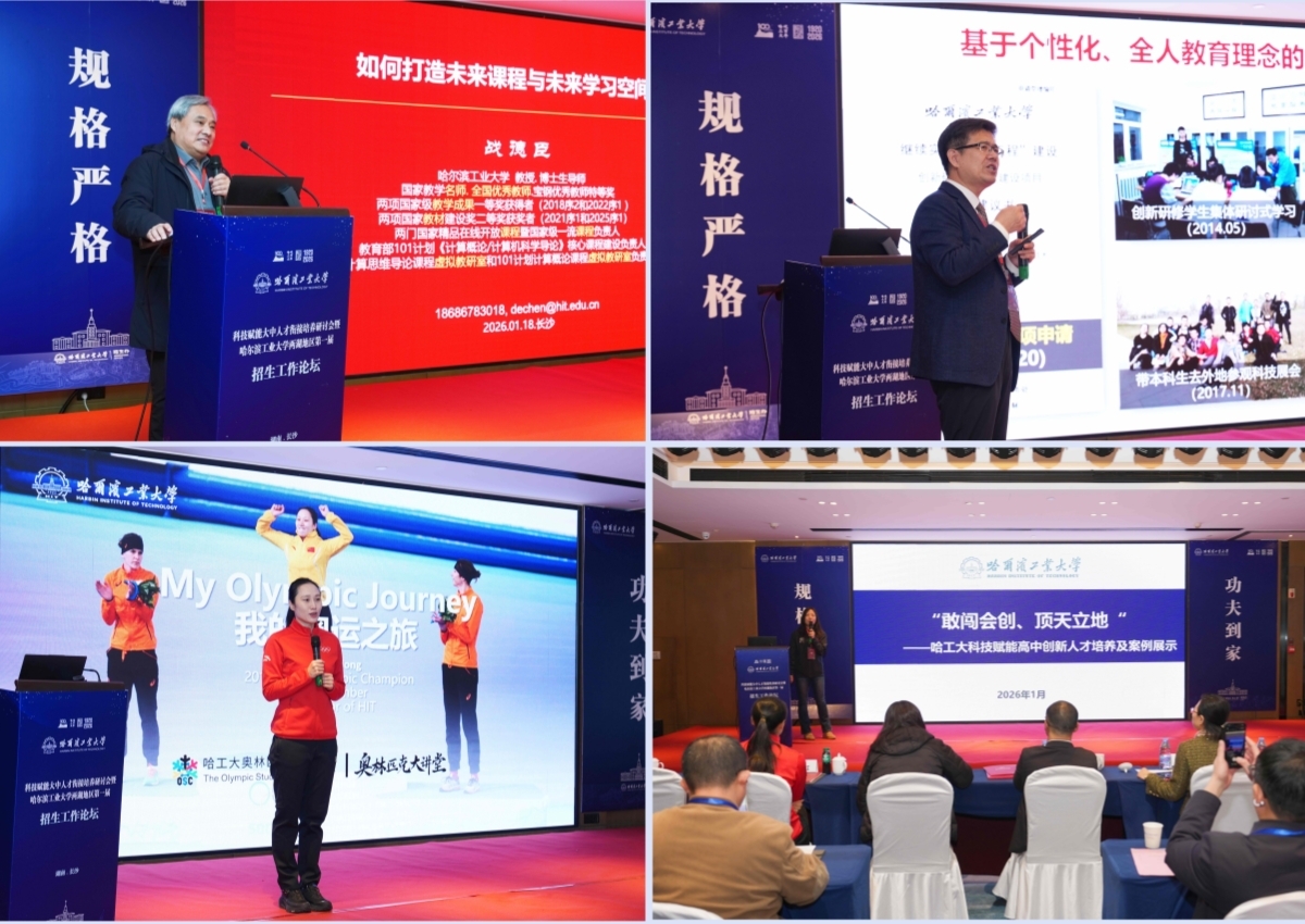哈工大全媒体(商艳凯 叶楠/文 郭金良/图)1月18日,我校举办科技赋能大中人才衔接培养研讨会暨湖南、湖北两省第一届招生工作论坛。来自湘、鄂两省80余所重点中学的100余位校长及教师代表与学校相关部门负责人、专家学者齐聚一堂,围绕拔尖创新人才培养、教育数字化转型等核心议题展开深度研讨。湖南省教育考试院院长曹文才出席研讨会并致辞,副校长帅永致辞并带队走访重点高中。