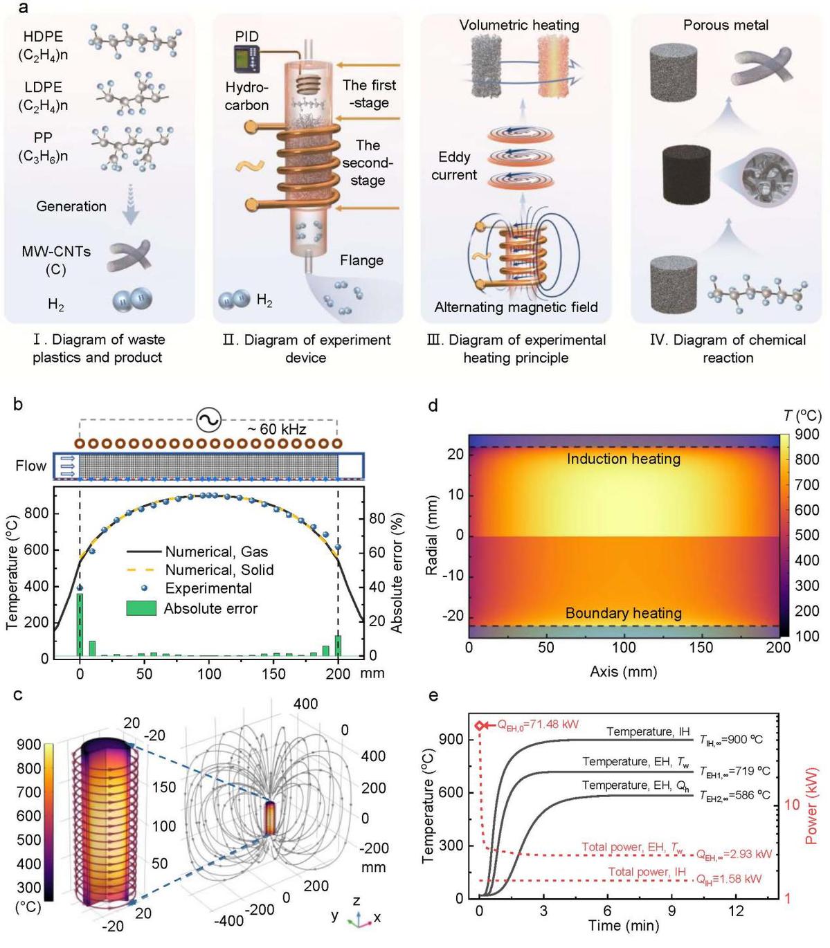 哈工大全媒体(张又元 余杰/文 余杰/图)近日,我校能源科学与工程学院帅永教授、张亚宁教授、潘如明副教授团队在废塑料资源化利用领域取得重要进展。团队创新性地提出一种基于电磁感应的整体加热方法,通过金属多孔催化剂实现废塑料的快速体积加热与高效热解催化转化,实现了目前最高的碳回收效率。相关成果以《基于电磁感应整体加热强化废塑料热解-催化制备碳纳米管》(Enhancing carbon nanotubes production from pyrolysis-catalysis of plastic waste through monolithic heating)为题发表于《国家科学评论》(National Science Review)上。