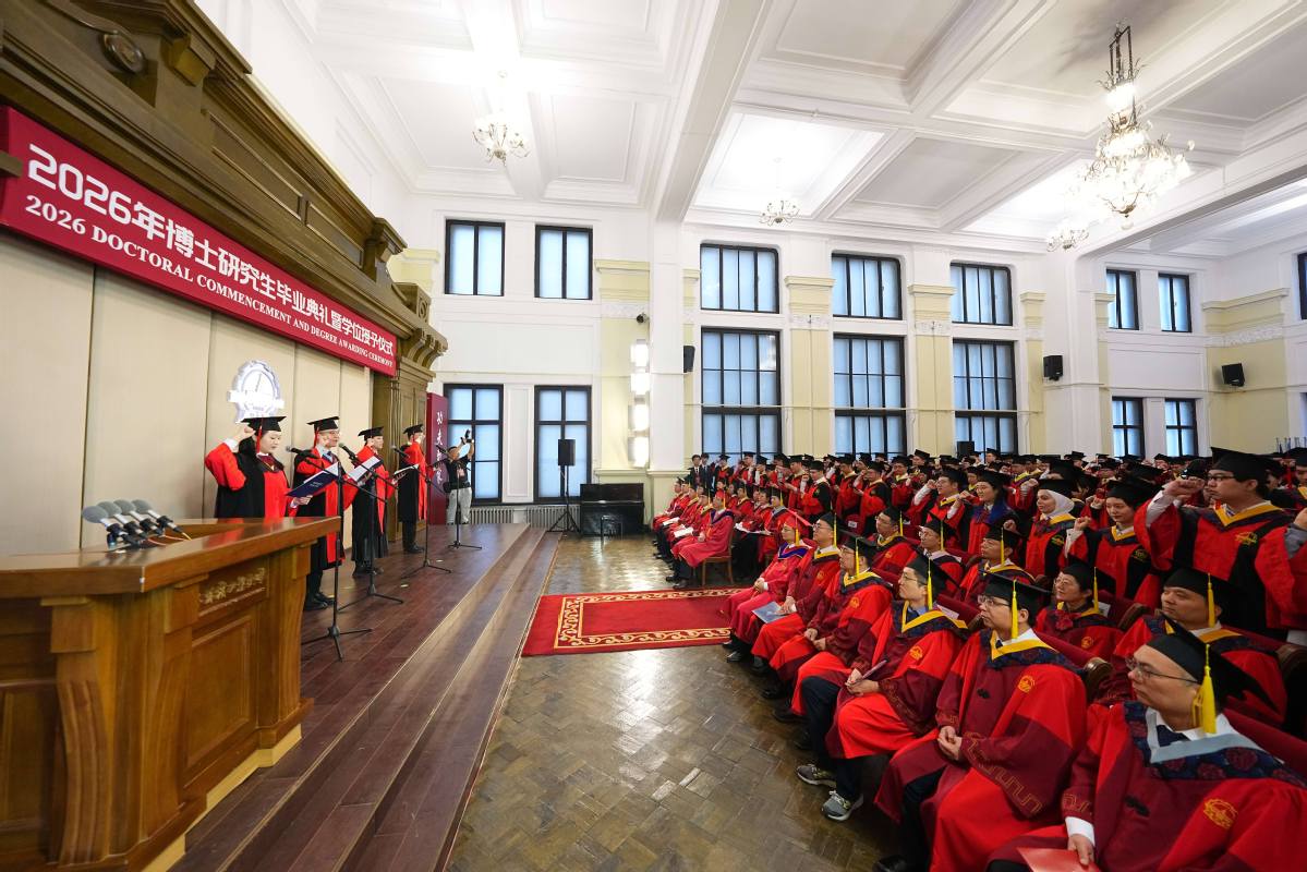 哈工大全媒体(阚思邈/文 辛然 吴文韬 程思禄 郑玉华 曹博寒 张钧瑞 阚思邈/图)春风作序,华章再启。在《我们一起远航》合唱中,哈工大博物馆再一次迎来最高学位授予仪式。在师长和亲友的见证下,323名博士毕业生踏上人生新征程。4月3日,哈工大2026年博士研究生毕业典礼暨学位授予仪式举行。校党委书记陈杰、校长韩杰才出席仪式,分别为博士毕业生颁发学位授予仪式纪念凭证、援正流苏并合影留念。