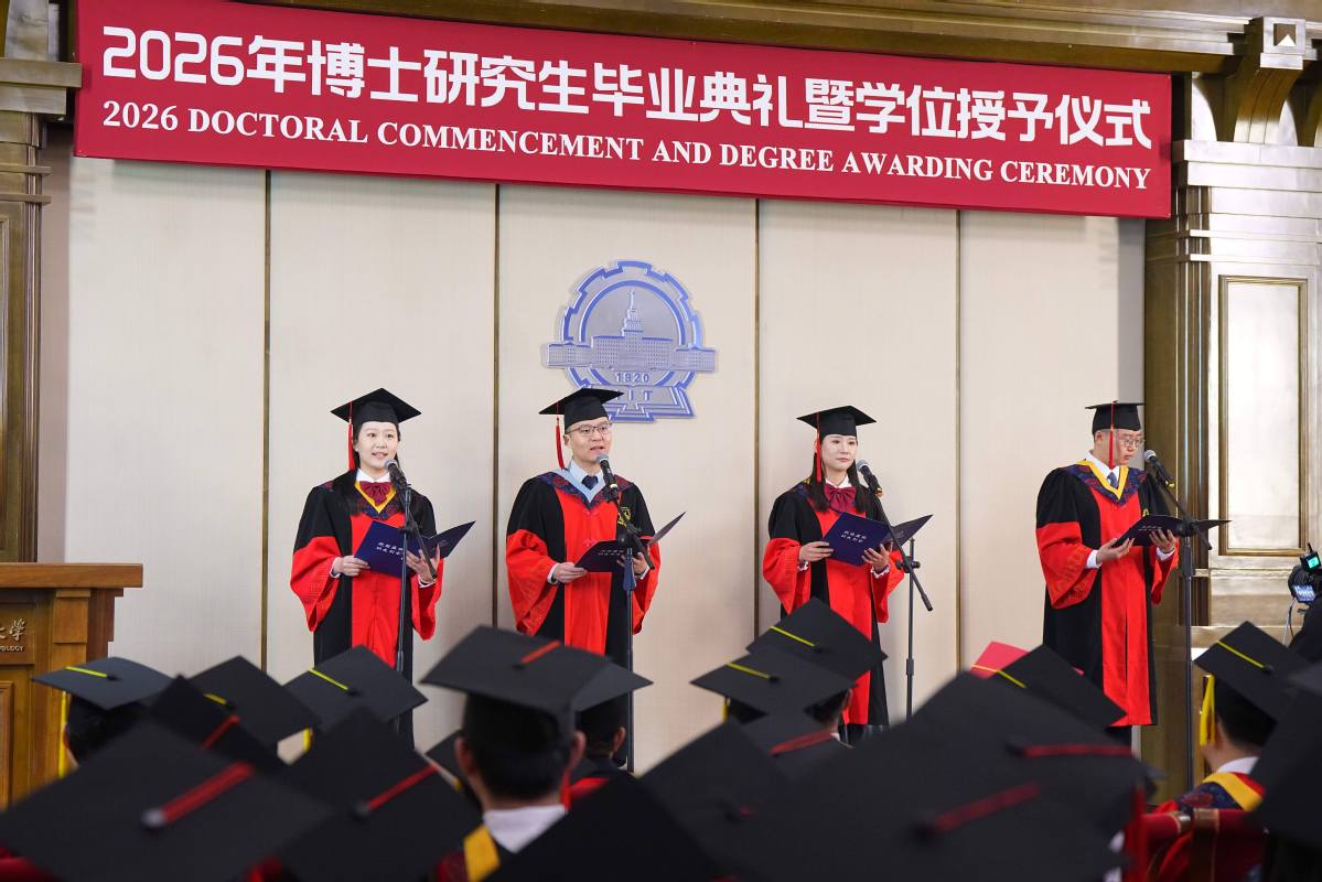 伴随着悠扬的乐声,4名博士毕业生以诗朗诵《光荣的追寻》,致敬哈工大“八百壮士”。“不负时代!不负韶华!不负母校!奋力书写为中国式现代化挺膺担当的青春篇章!”在毕业生代表的领誓下,全体毕业生进行青春宣誓。